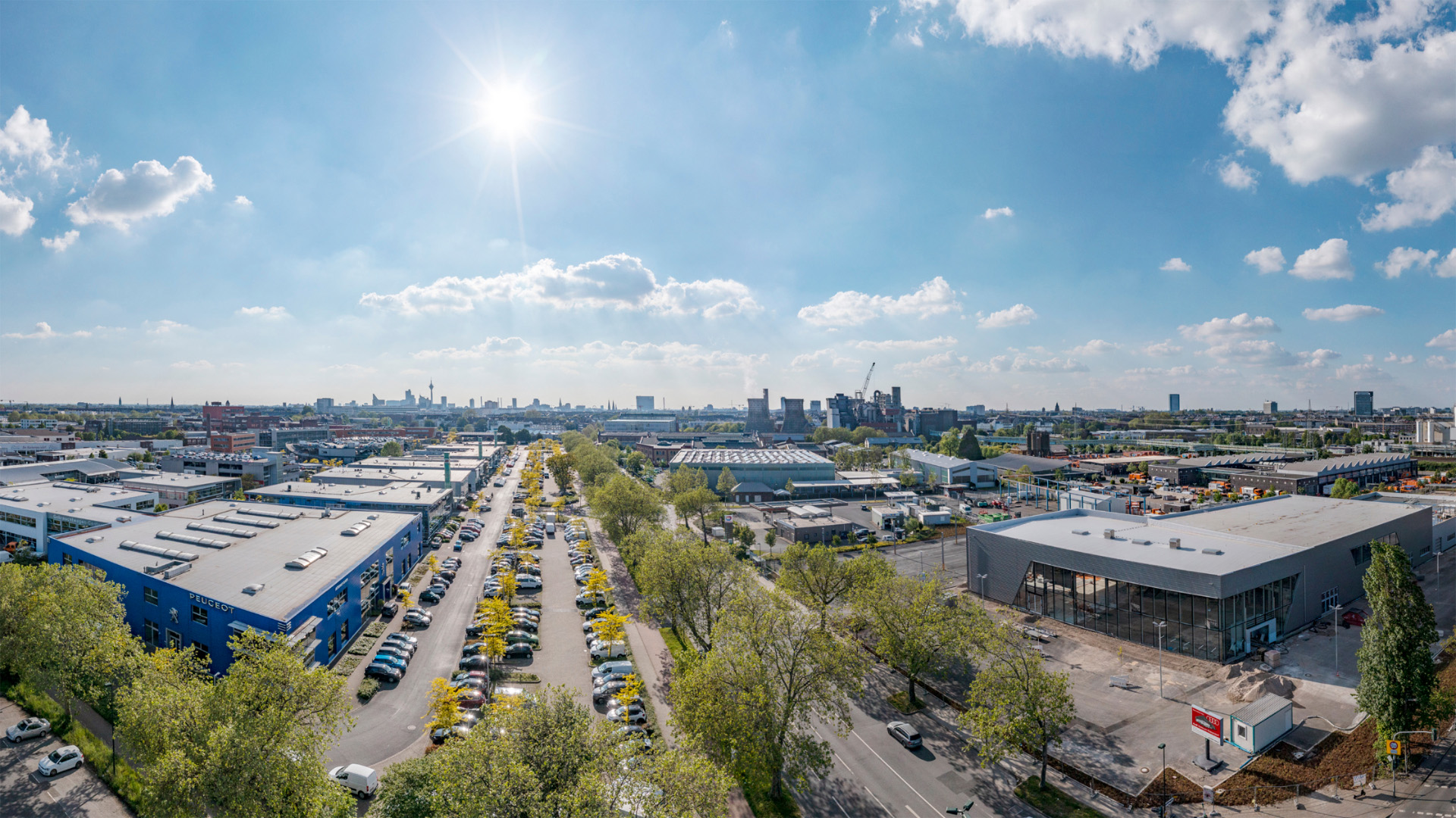 Unterhalb der Galerie liegt die Kundenzone mit dem Verkaufsbereich und der Fahrzeugübergabe. Eine weit ausladende Treppe führt auf die Galerieebene, auf der sich Büroräume befinden sowie weitere Flächen für die Präsentation hochwertiger Gebrauchtfahrzeuge. Im rückwärtigen Gebäudeteil befindet sich die rund 2.000 Quadratmeter große Werkstatt und das Teilelager. Auf der Freifläche des 19.000 Quadratmeter großen Grundstücks sowie auf Teilen des Werkstattdaches ist viel Platz für die Gebrauchtwagenausstellung und die Kundenparkplätze.