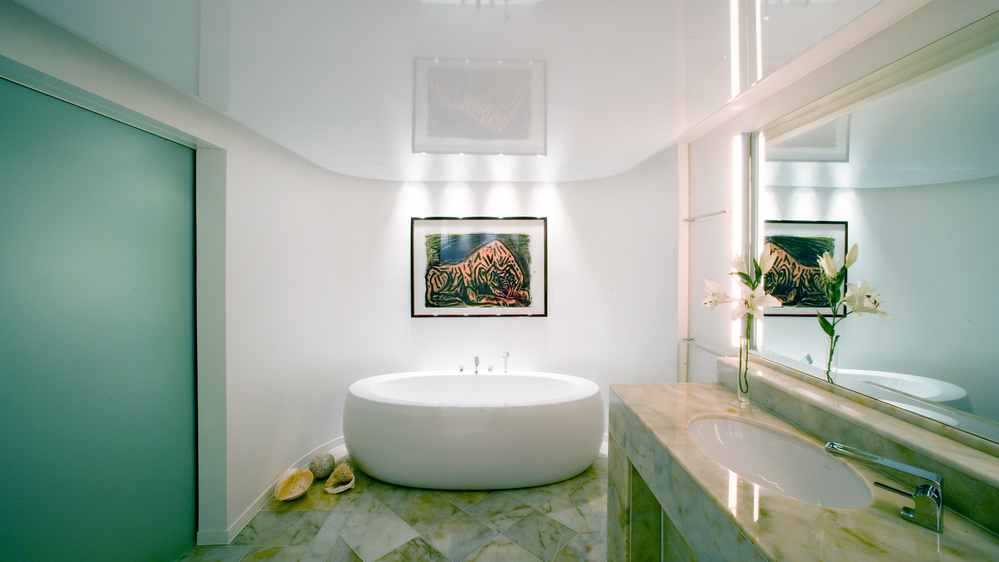 Im Obergeschoss wurde ein großzügiger Wellnessbereich mit Saunen, Whirlpools und einen 37 Quadratmeter großen Swimmingpool eingerichtet. Für den Einbau des Pools öffneten Schormann Architekten das Oberlicht auf dem Dach, so dass ein Kran das Becken ins Innere heben konnte. Großzügige, schräge Dachfenster fluten die Räume mit Tageslicht. Um den Pool erstreckt sich eine großzügige Ruhezone mit warmen Holzfußböden, die für eine behagliche Atmosphäre sorgen.