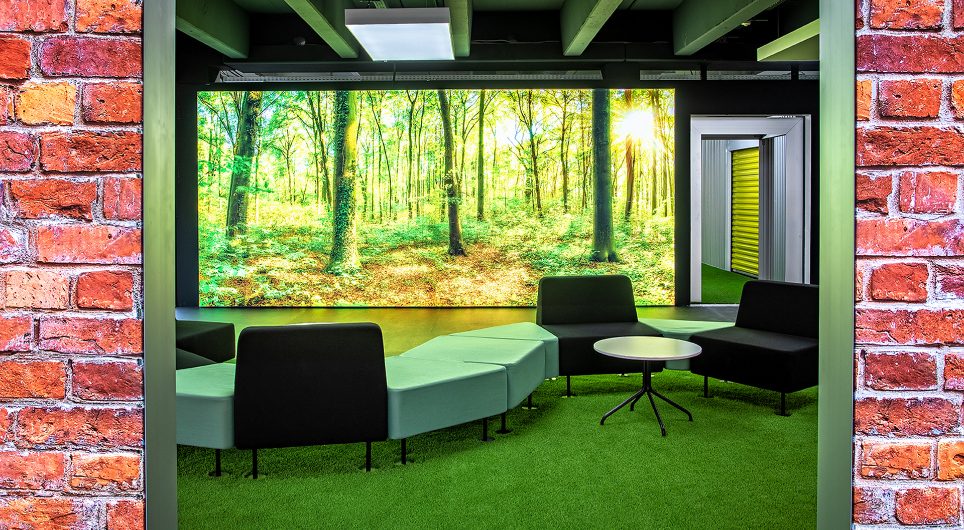 Unter dem Dach des 1.850 Quadratmeter großen Neubaus im Gelsenkirchener Stadtquartier Graf Bismarck sind Ausstellungsbereich, Montagewerkstatt, Logistikzentrum und ein zweigeschossiger Bürotrakt vereint. Blickfang des Gebäudes bildet das zentrale Eingangsportal. Es führt direkt zum Präsentationsbereich, der dank lückenloser technischer Versorgung mit modularen Elementen flexibel gestaltbar ist und ständig wechselnde Ausstellungen ermöglicht.