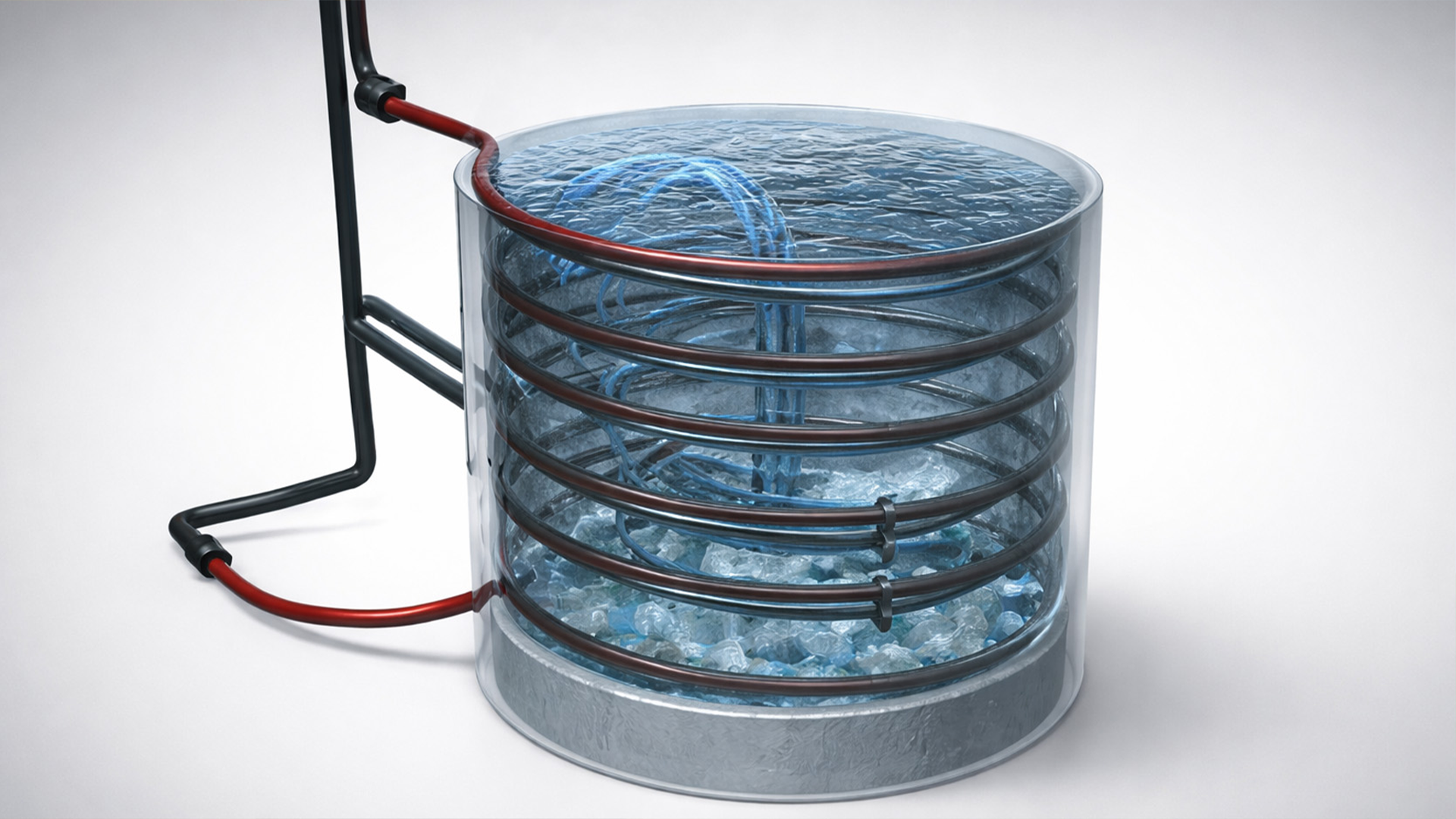Eine Eisspeicher-Heizung klingt im ersten Moment paradox: Wie lässt sich ein Gebäude mit Eis beheizen? Das Geheimnis liegt in der Thermodynamik, genauer gesagt im Phasenwechsel von Wasser zu Eis.